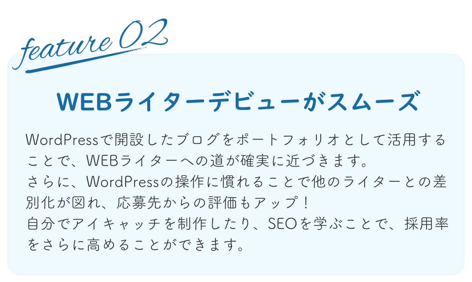 私がこのWordPress講座で応援し、サポートするのは、在宅ワークやWEBライター在宅ワークをはじめるための土台をつくり、実際に応募してみるまでをサポートするものです。