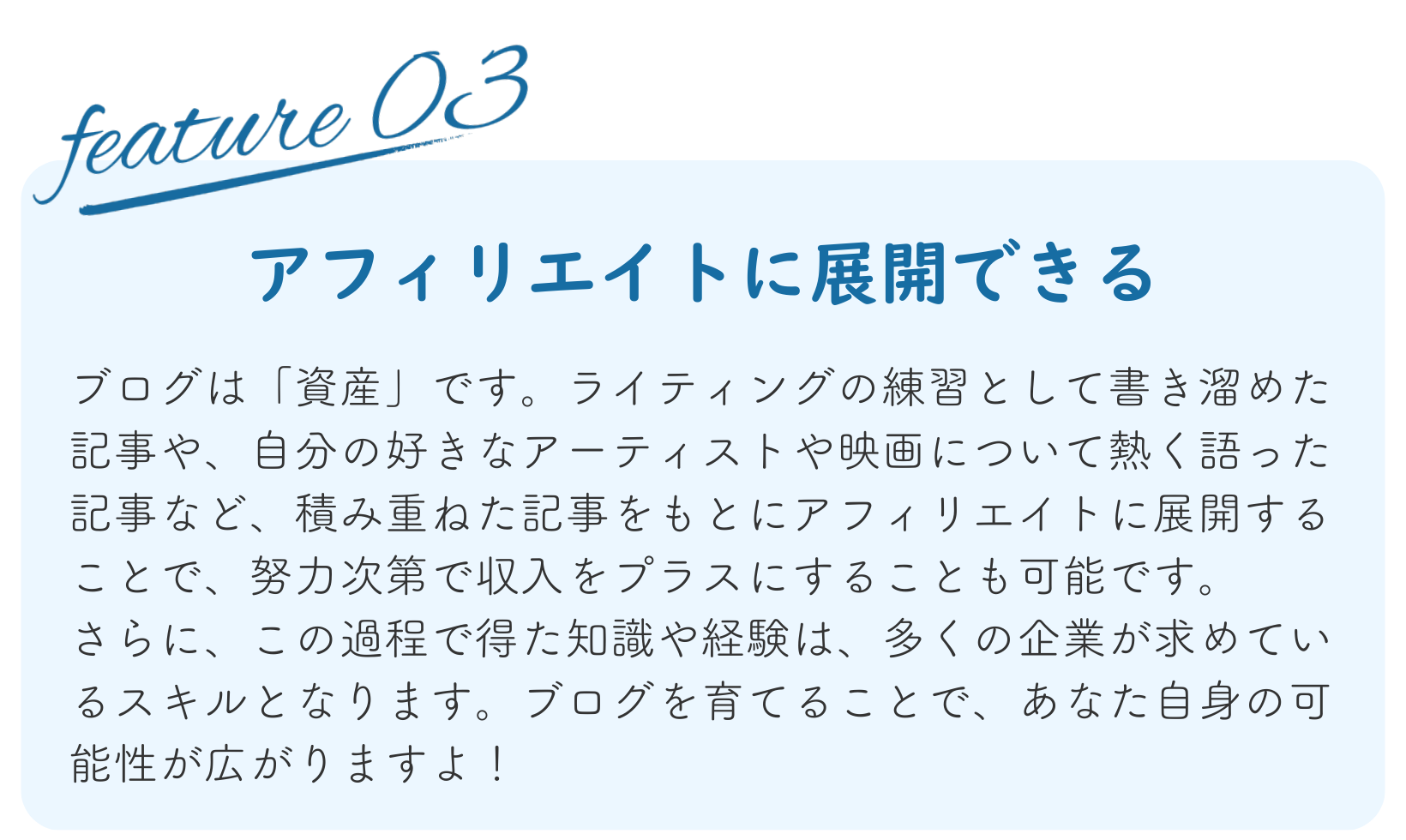 私が過去運営していたオンライン講座で実現できなかった「ブログを開設したその先」を今回こそあなたにしっかり見ていただき、体験してもらえるような土台づくりを全力でサポートいたします!