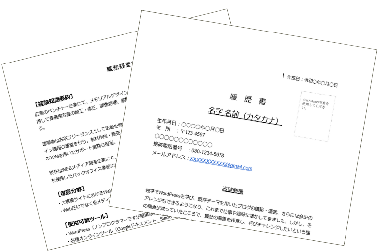 実際に私が応募時に使用している「履歴書」と「職務経歴書」のテンプレートをダウンロードしていただけます。